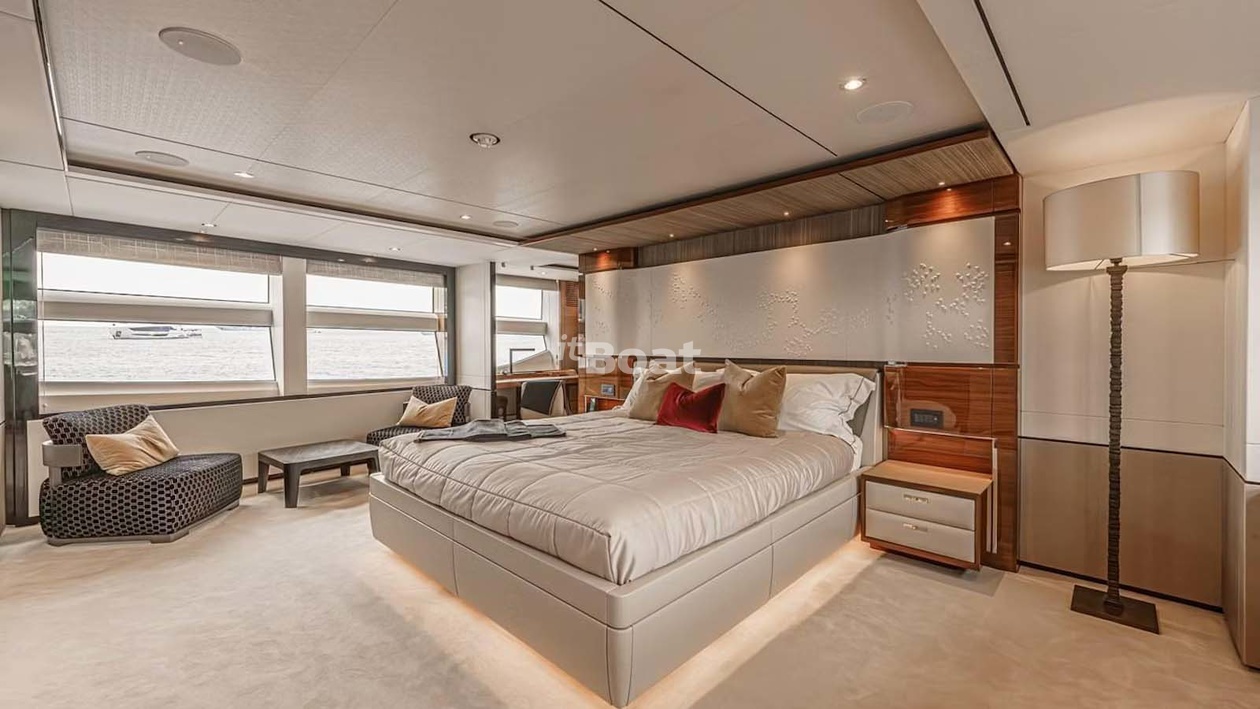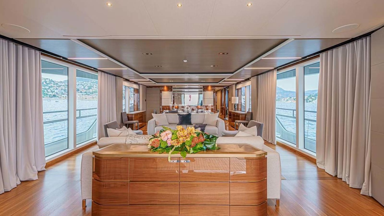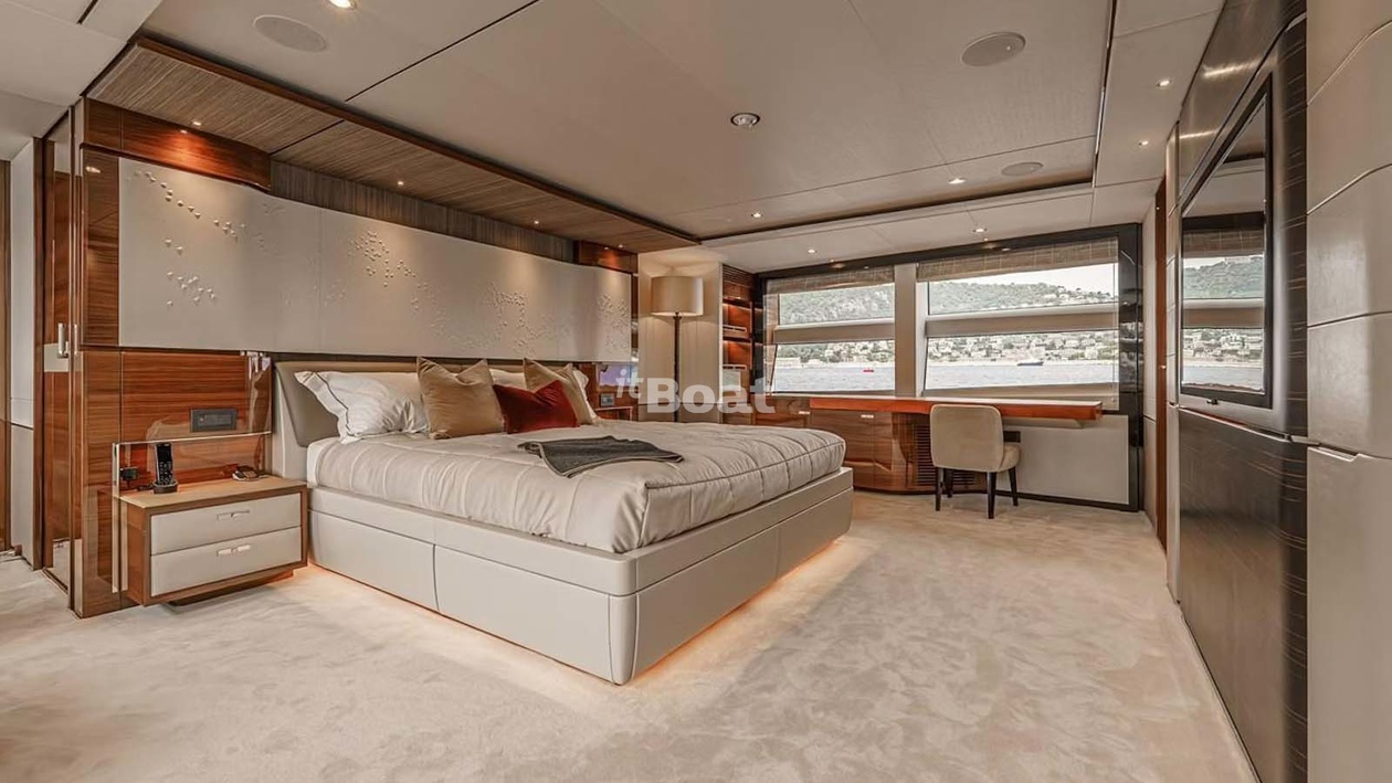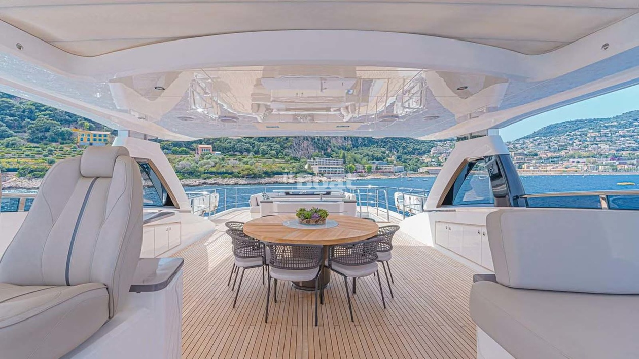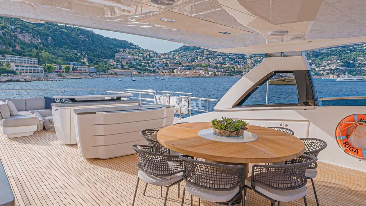 Motor yacht Princess Yachts Avalon 35.2 length metres The shipyard Princess Yachts rolled off the slipway 2018 in year. The yacht can accommodate up to 8 guests and is maintained and operated by 5 crew members. Studio Bernard Olesinski Ltd was responsible for her appearance.