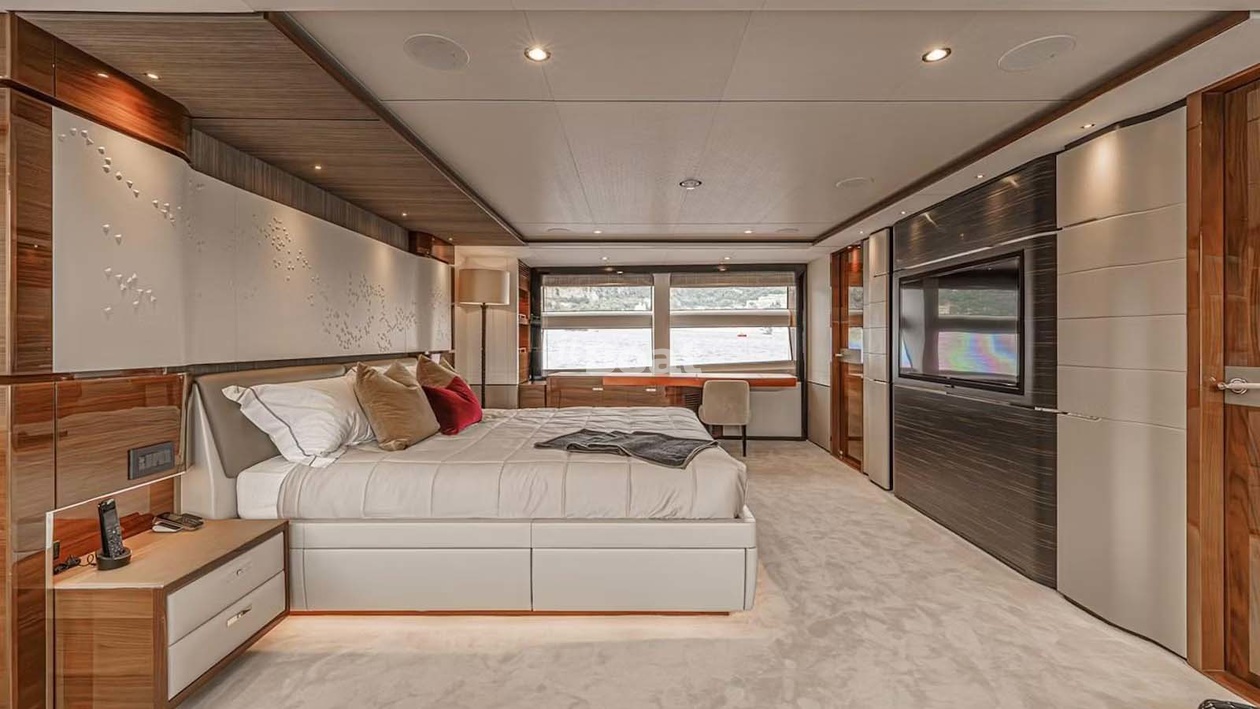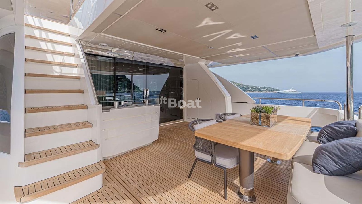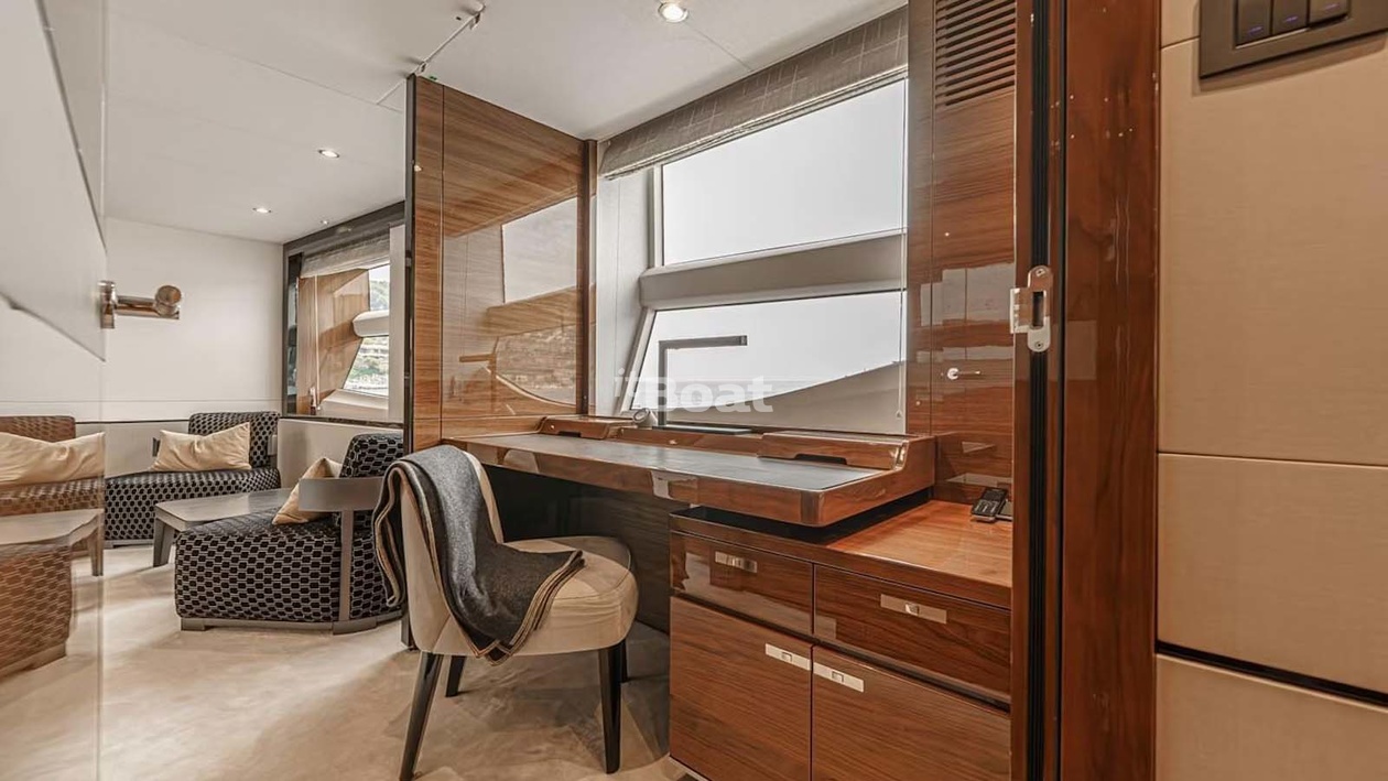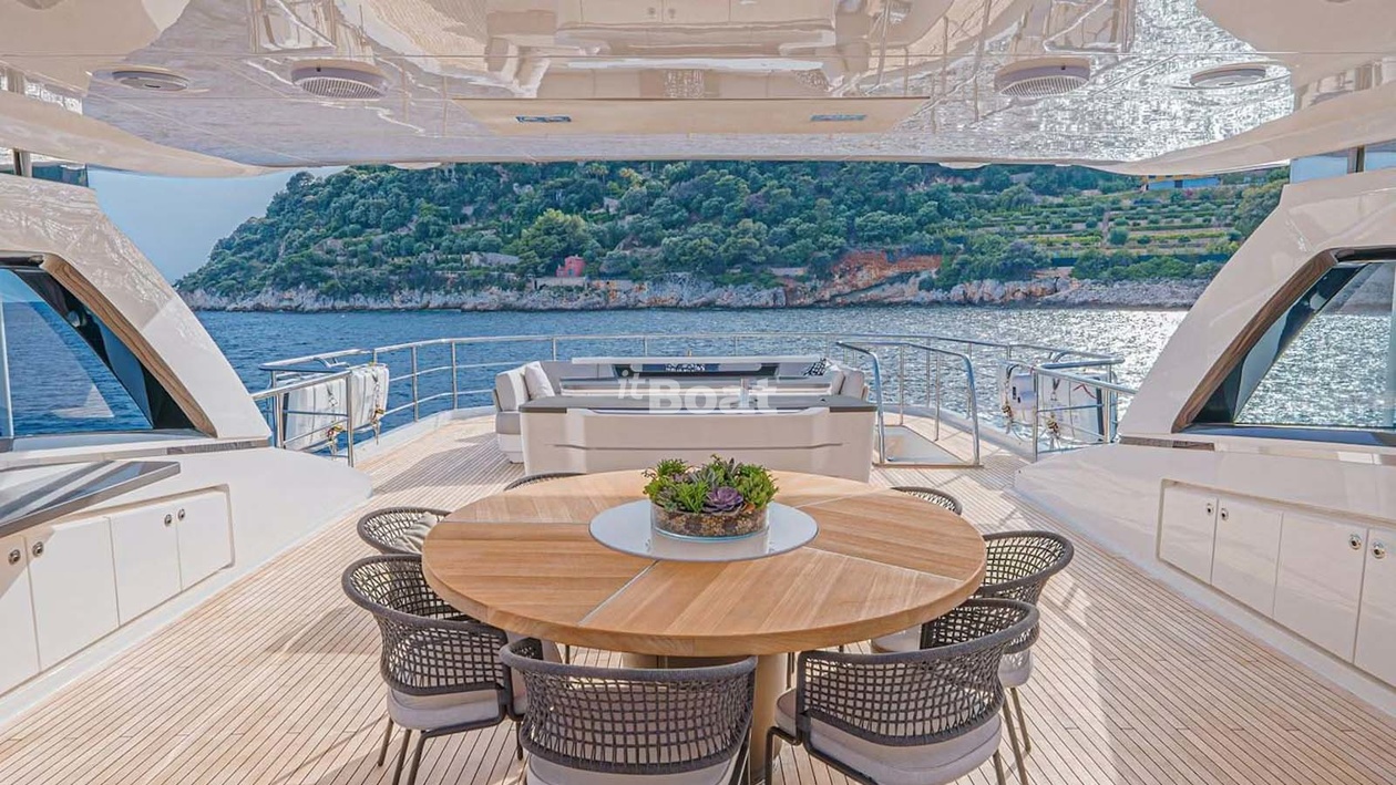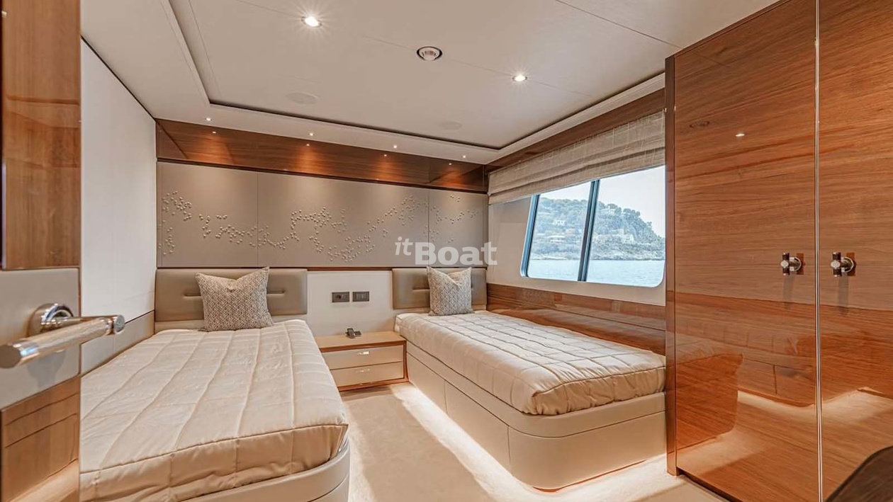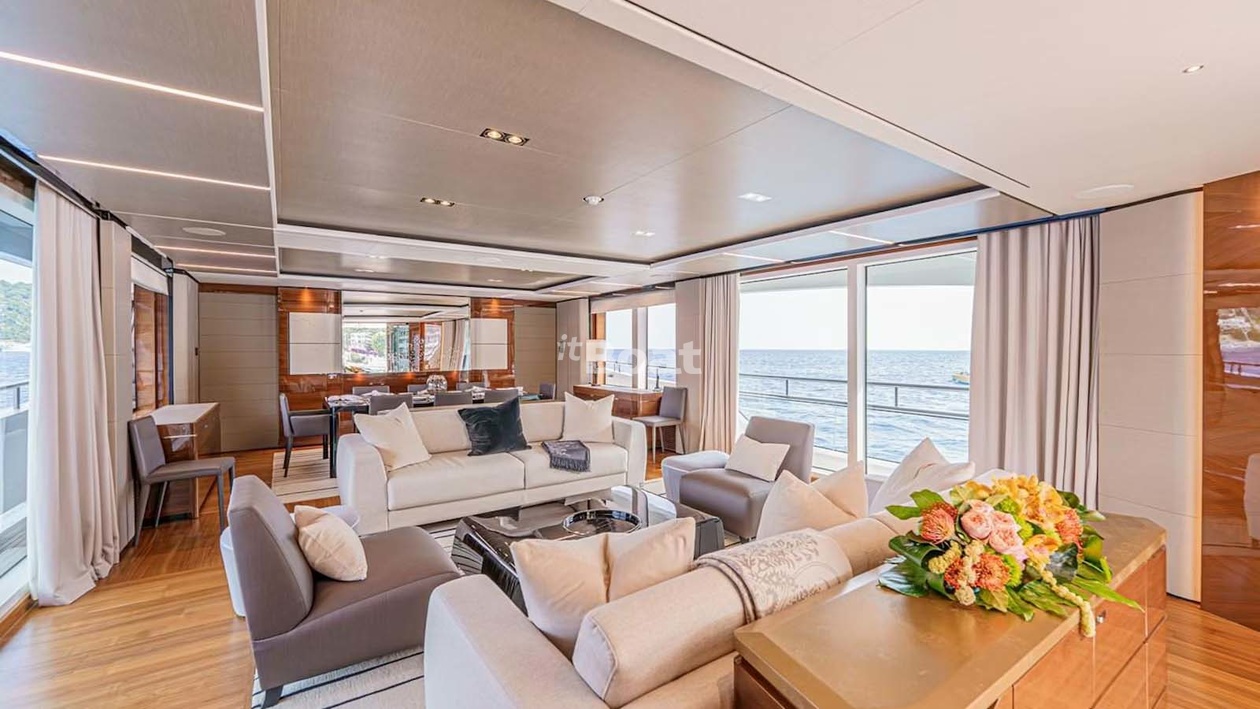Motor yacht Princess Yachts Avalon 35.2 length metres The shipyard Princess Yachts rolled off the slipway 2018 in year. The yacht can accommodate up to 8 guests and is maintained and operated by 5 crew members. Studio Bernard Olesinski Ltd was responsible for her appearance.