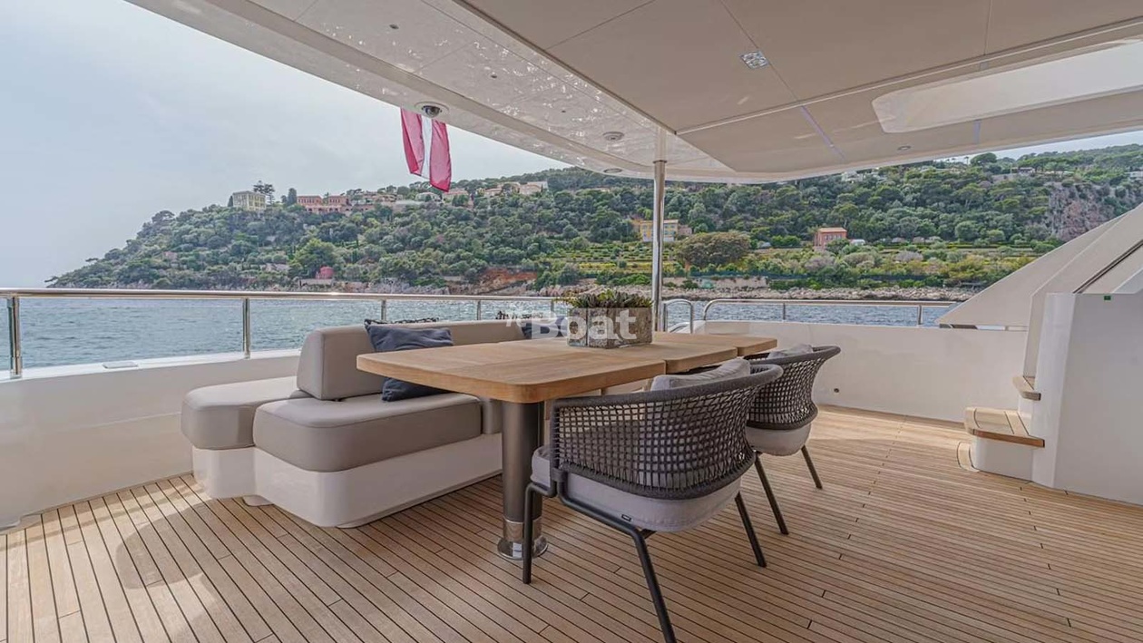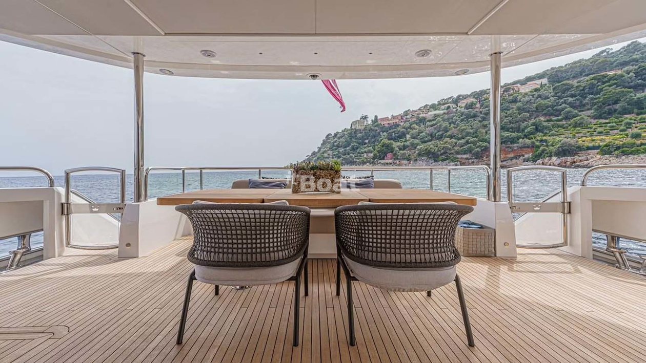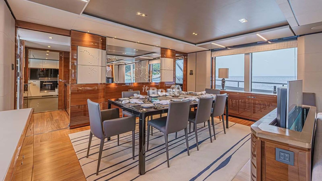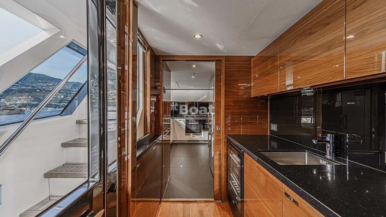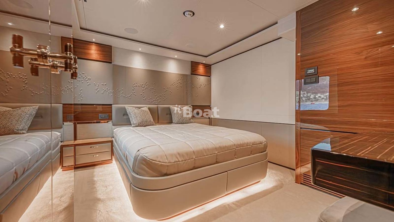 Motor yacht Princess Yachts Avalon 35.2 length metres The shipyard Princess Yachts rolled off the slipway 2018 in year. The yacht can accommodate up to 8 guests and is maintained and operated by 5 crew members. Studio Bernard Olesinski Ltd was responsible for her appearance.