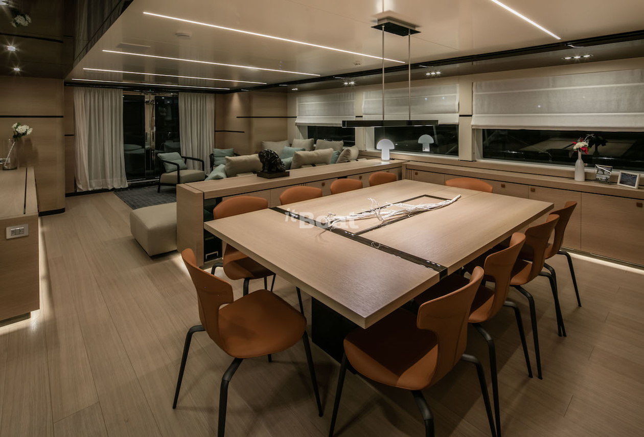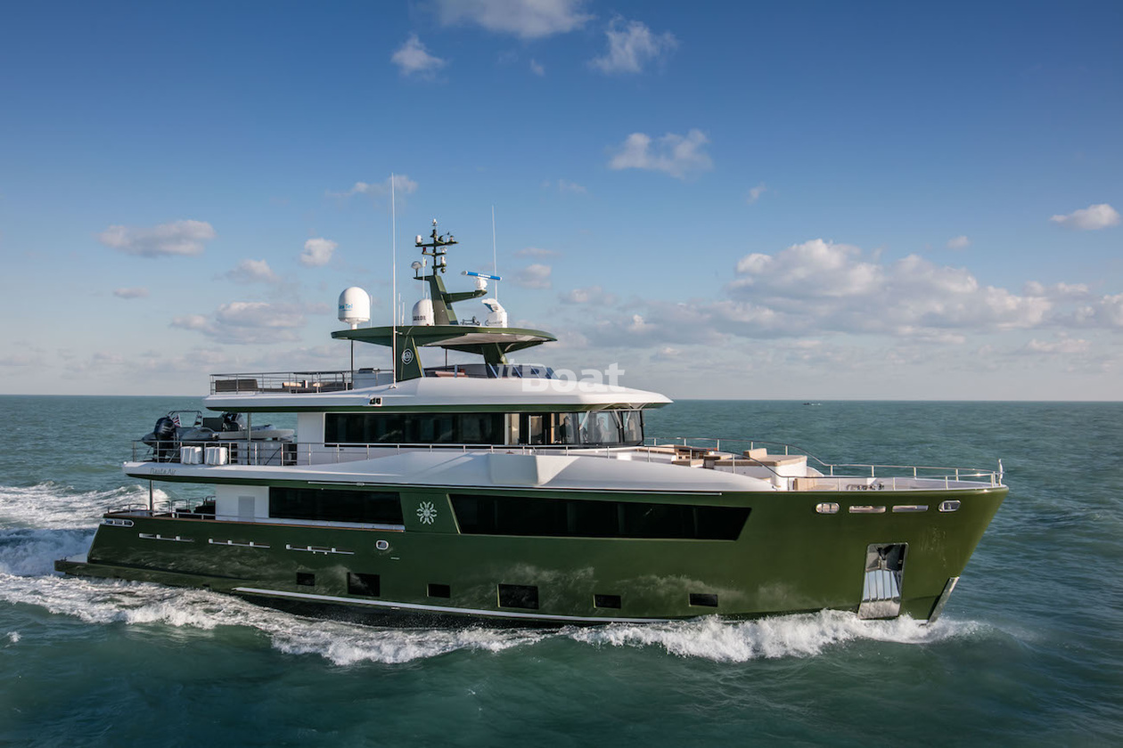 33.8-meter motor yacht Cantiere delle Marche Hyhma was built in 2017 at the Cantiere delle Marche shipyard. The yacht can accommodate up to 10 guests and is maintained and operated by 5 crew members. Its naval architecture was the responsibility of Vripack. The exterior and interior design is designed Nauta Yachts.
