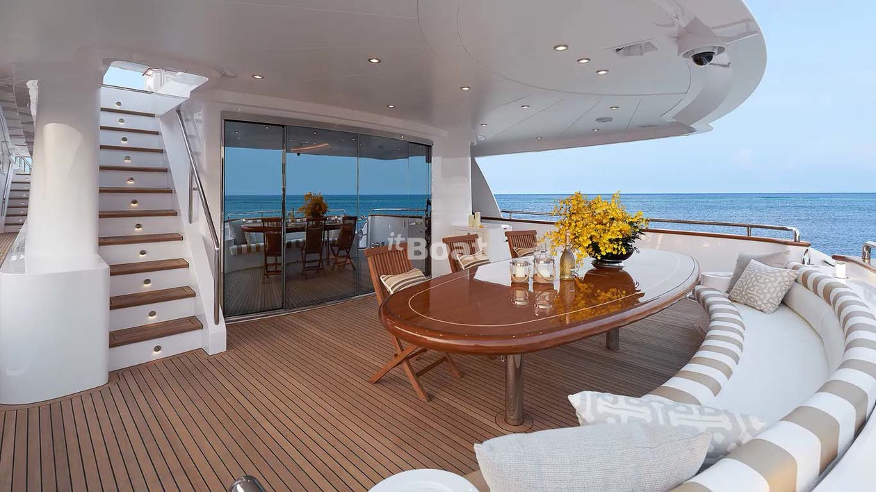 33.5-meter motor yacht Horizon Abaco was built in 2017 at the Horizon shipyard. The yacht can accommodate up to 8 guests and is maintained and operated by 3 crew members. The exterior and interior design is designed Beiderbeck Designs.