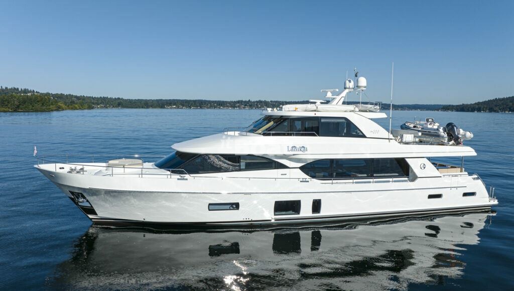 30.5-meter motor yacht Ocean Alexander Lanikai was built in 2018 at the Ocean Alexander shipyard. The yacht can accommodate up to 8 guests and is maintained and operated by 5 crew members. The exterior and interior design is designed Evan K. Marshall.
