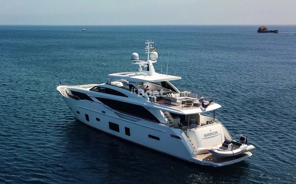 Motor yacht Princess Yachts Ghost 30.5 length metres The shipyard Princess Yachts rolled off the slipway 2018 in year. The yacht can accommodate up to 10 guests and is maintained and operated by 5 crew members. The shipyard itself was responsible for her exterior and interior design.