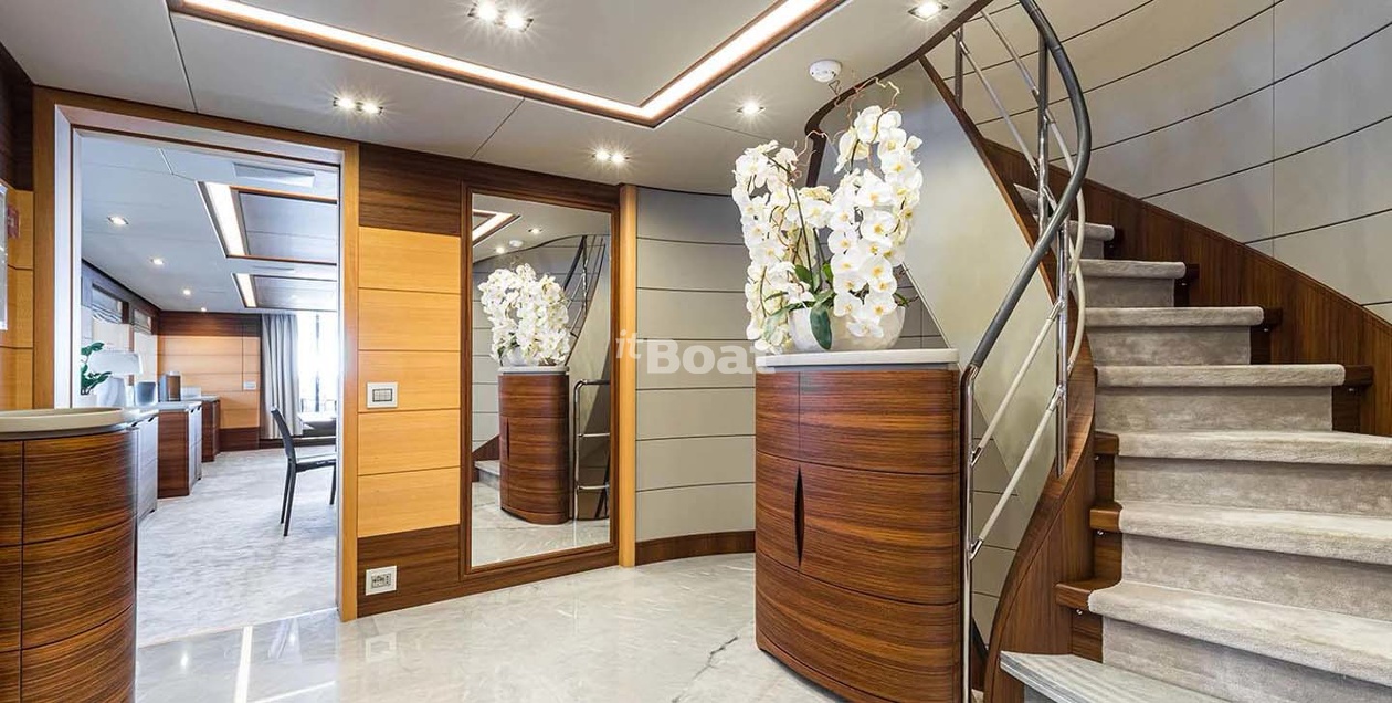 49.8-meter motor yacht Benetti Yachts Bombay was built in 2016 at the Benetti Yachts shipyard. The yacht can accommodate up to 10 guests and is maintained and operated by 11 crew members. The exterior and interior design was developed by the shipyard's in-house design department.